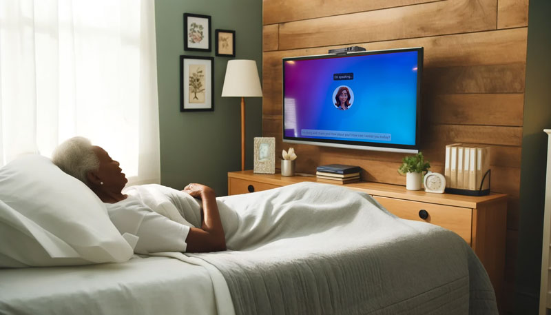 ONSCREEN turns TVs into an interactive care platform, making family video calls, telehealth, and virtual social events easily accessible for older adults. Our platform also includes an AI companion that helps with regular check-ins and provides companionship, simplifying daily interactions and enhancing quality of life for older adults and caregivers, and providing deep data insights for providers.
