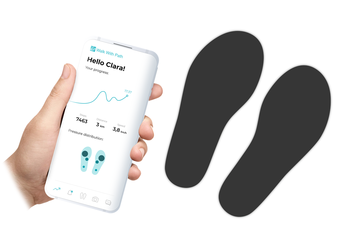 Our next product, Path Feel, is a connected insole that provides biofeedback to improve balance. Path Feel acts by providing haptic feedback to the feet and is aimed at people suffering from neuropathy, with the main population being those with diabetes. Path Feel is connected to a clinician dashboard and a user facing app, that provides data insights to enhance predictive screening and personalised medicine.